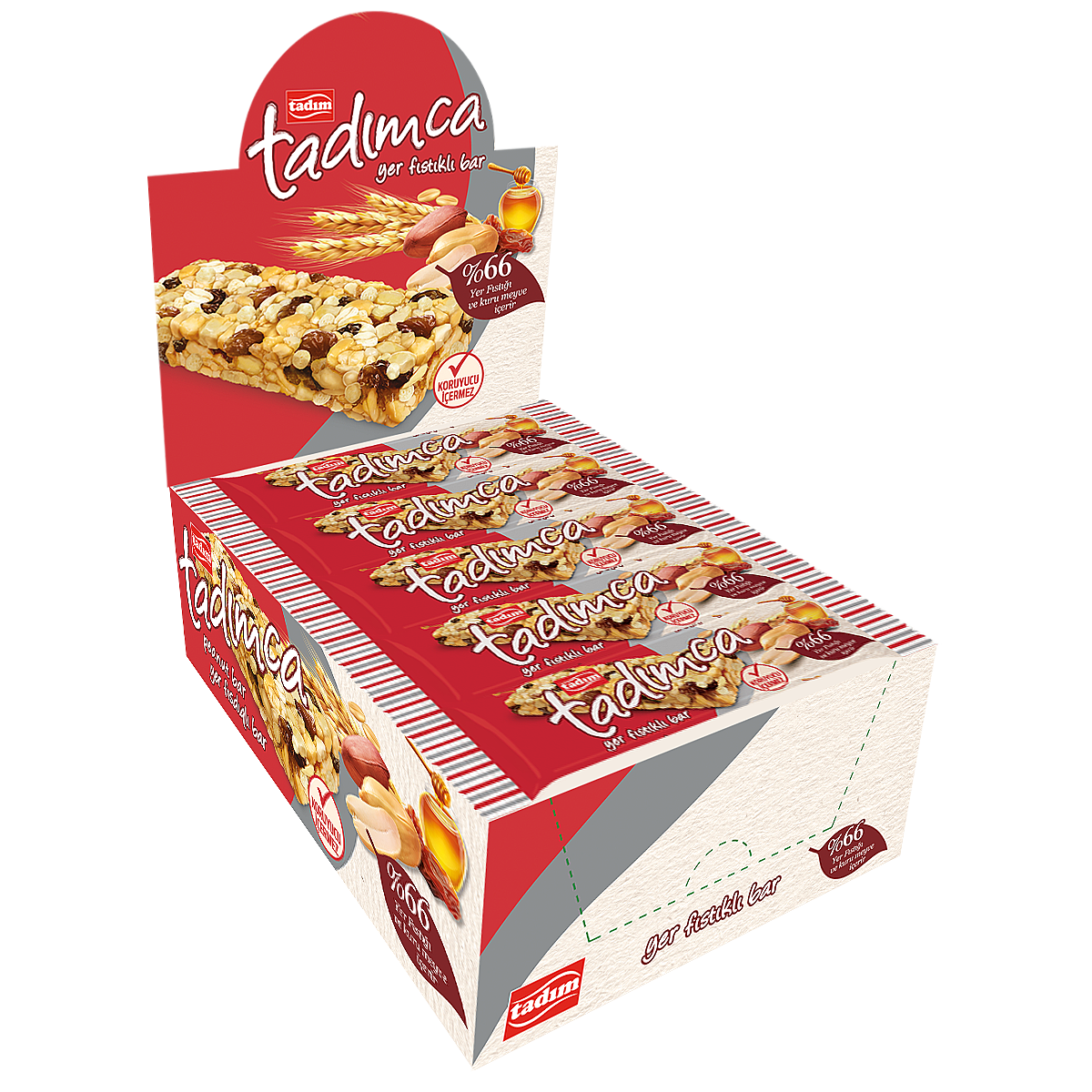 %65 oranında yer fıstığı ve kuru meyve içeren Tadım Yer Fıstıklı Bar, sağlık ve lezzetin buluştuğu nadir ürünlerden biri. Zengin içeriğiyle yüksek doyuruculuk sunan Tadım Yer Fıstıklı Bar’ı lezzetli bir ara öğün olarak tercih edebilirsin.